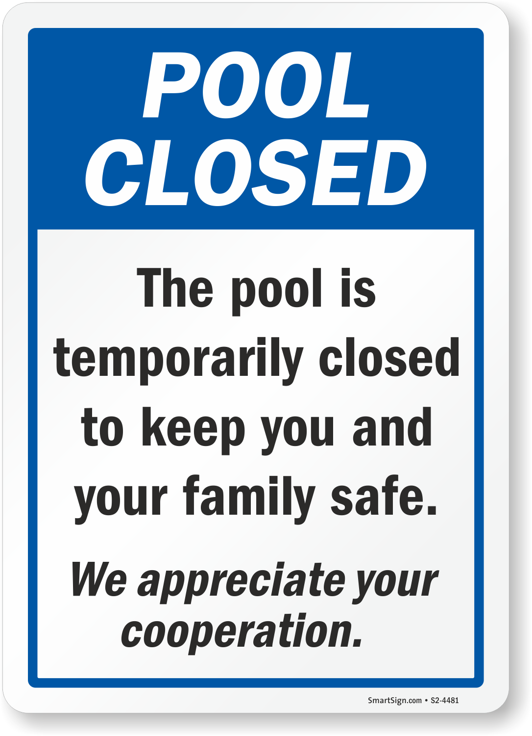 Pool Closed Sign: The Pool Is Temporarily Closed To Keep You And Your Family Safe. We Appreciate Your Cooperation