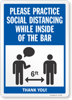 Social Distancing Sign: Please Practice Social Distancing While Inside Of The Bar, Thank You (S2-4642)