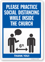 Maintain a safe distance among worshipers inside the church using a hard-to-miss Social Distancing Sign.
