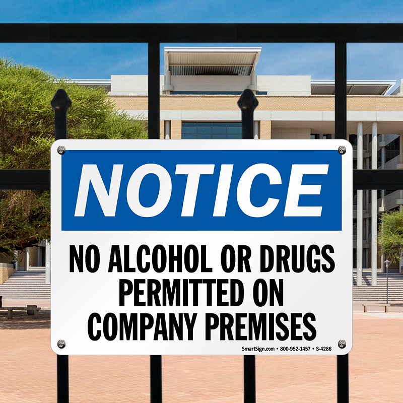 Keep unwanted visitors out. Use a "no alcohol or drugs permitted on company premises" sign. A sign is proven and effective.