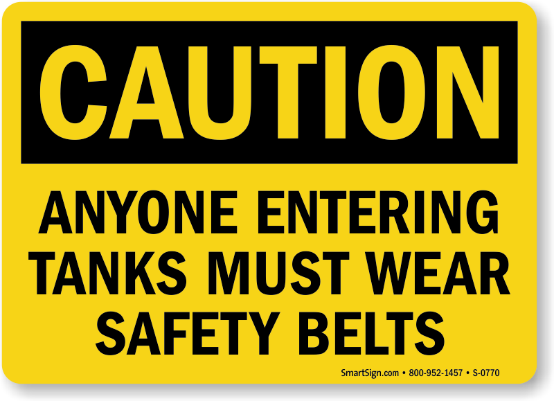 Use a "anyone entering tanks must wear safety belts" sign.