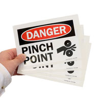 Alert workers of pinch point areas and prevent accidents with this danger sign. Bold legend accompanied by a clear graphic effectively communicates your message. Rounded corners resist fraying and add to the durability of the product.