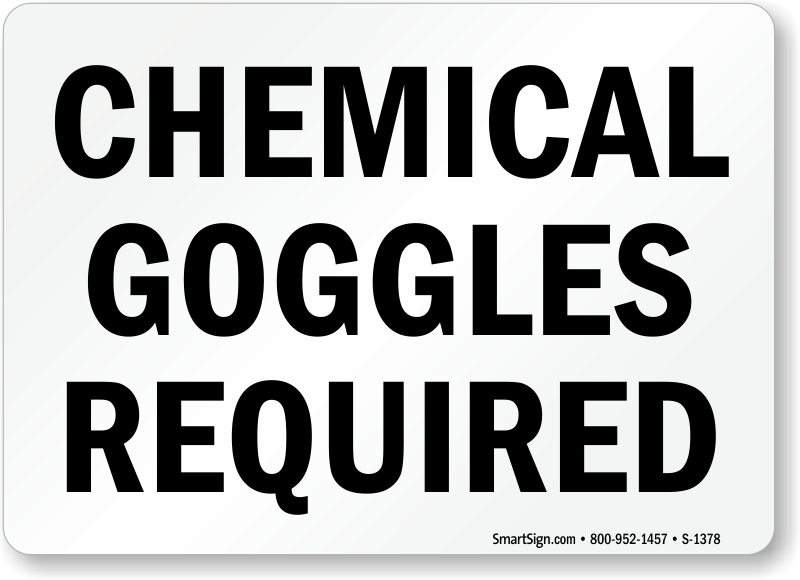 Protective equipment doesn't help unless you wear it. Use a "chemical goggles required" sign.