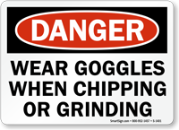 OSHA Danger Sign: Wear Goggles When Chipping Or Grinding (S-1401)