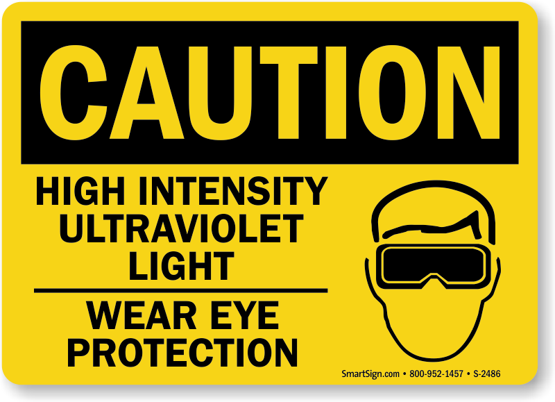 Make sure that safety is at the top of your list. Use a "high intensity ultraviolet light wear eye protection" sign.