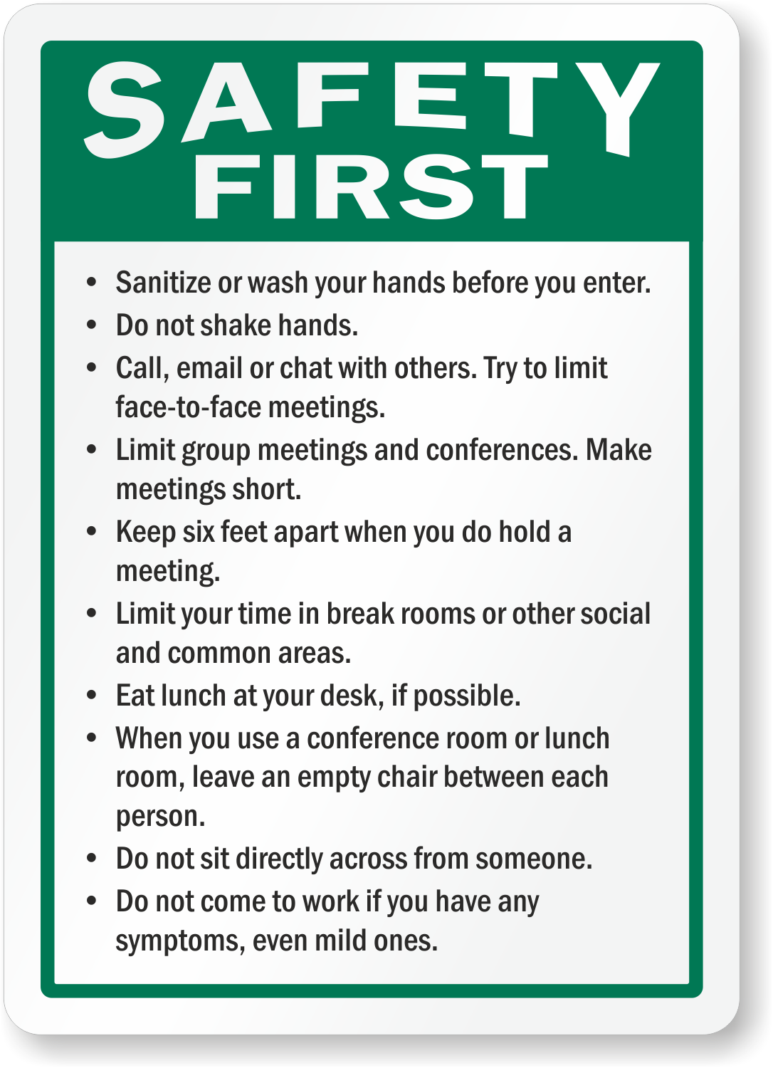 Custom Social Distancing Sign: Safety First - Sanitize Or Wash Your Hands Before You Enter. Do Not Hand Shake. Keep Six Feet Apart.
