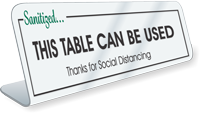 ShowCaseâ„¢ Desk Sign: Sanitized - This Table Can Be Used, Thanks For Social Distancing (SE-7452)