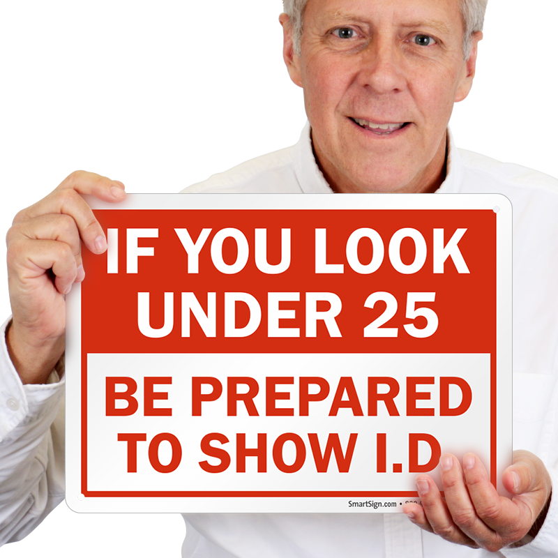Visitors Sign: If You Look Under 25, Be Prepared To Show I.D. (S-7389)