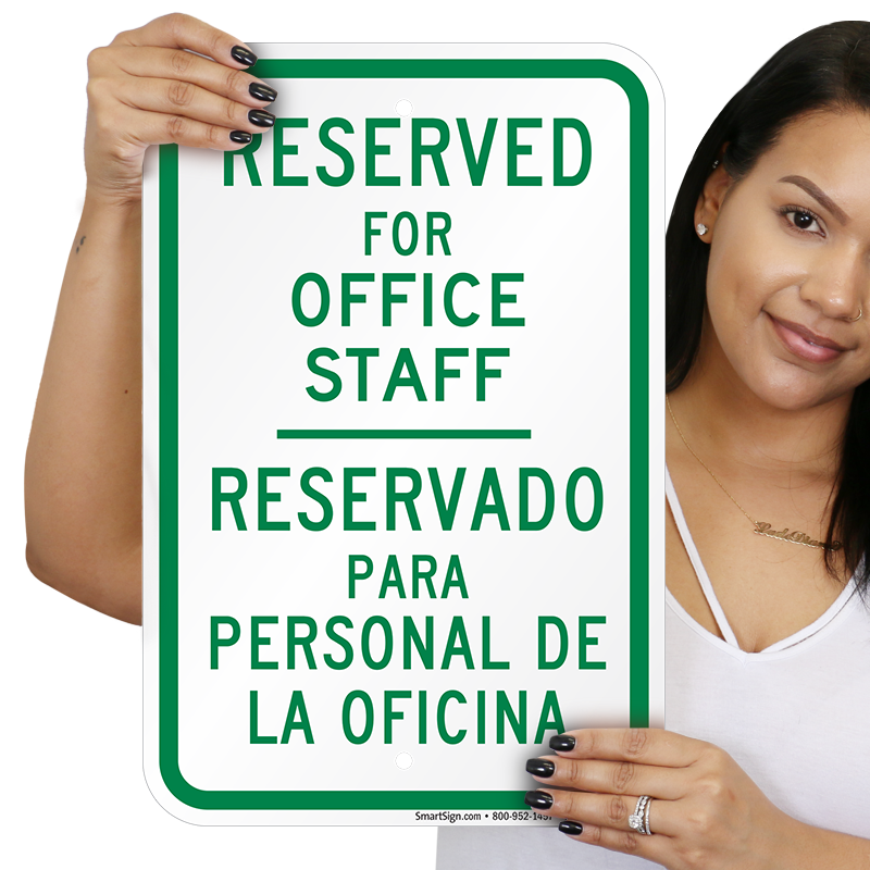 Your office staff works hard- why not let the world know that they deserve reserved parking with this durable bilingual aluminum sign?