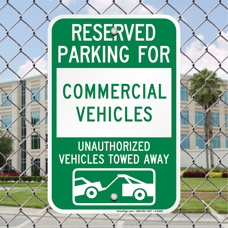 Reserved Parking Sign: Reserved Parking For - Commercial Vehicles Unauthorized Vehicles Towed Away (with Car Tow Graphic) (K-8468)