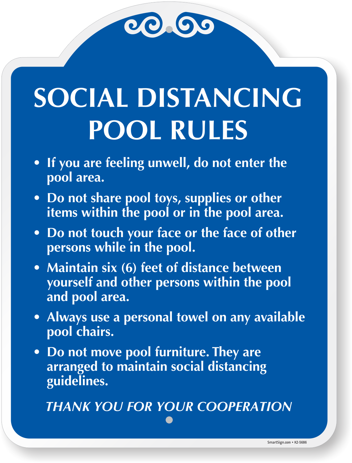 24 in. x 18 in. SignatureSign: Social Distancing Pool Rules, Thank Your For Your Cooperation Designer Sign (K2-5686) Learn More...