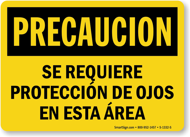 Use Spanish sign to clearly communicate with your Hispanic workers. Se Requiere Proteccion De Ojos En Esta Area sign will remind them that eye protection is required in the area.