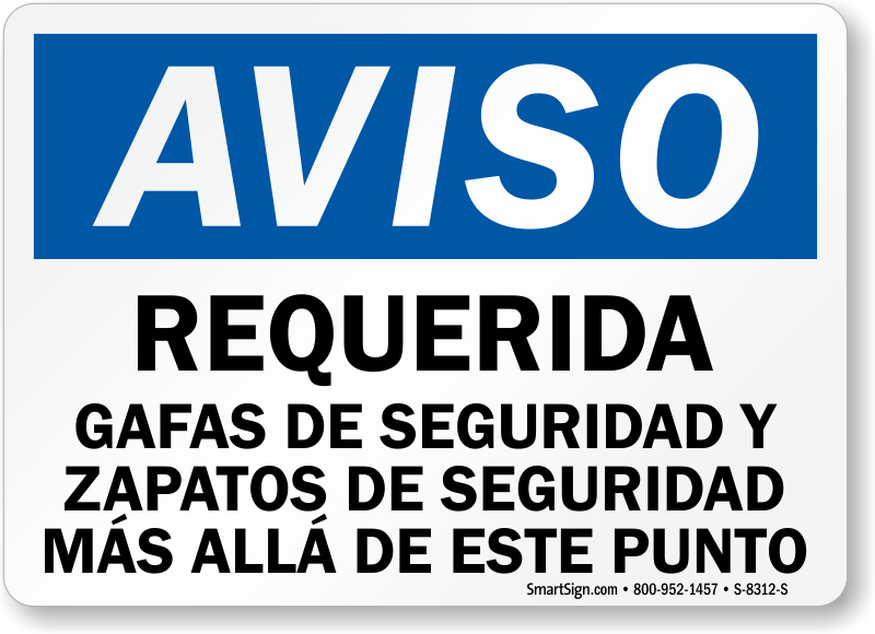 This OSHA Notice sign in Spanish will cater to your Hispanic workers. Mount the sign to make safety glasses and safety shoes required beyond a point.