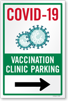 This conspicuous directional sign is a great way to guide visitors towards the vaccination clinic parking.