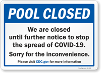 Pool Closed Sign: We Are Closed Until Further Notice To Stop The Spread, Sorry For The Inconvenience (S2-4482)