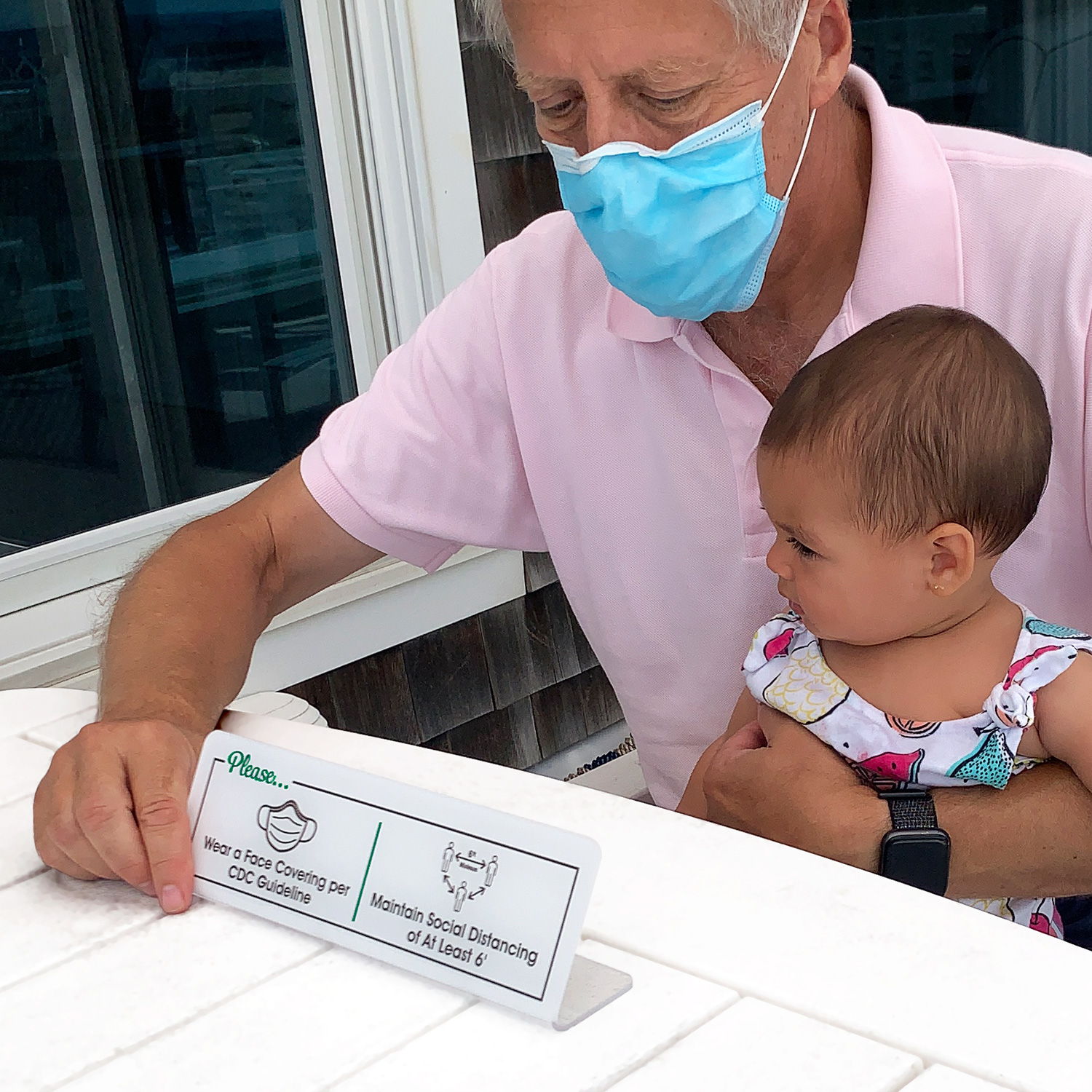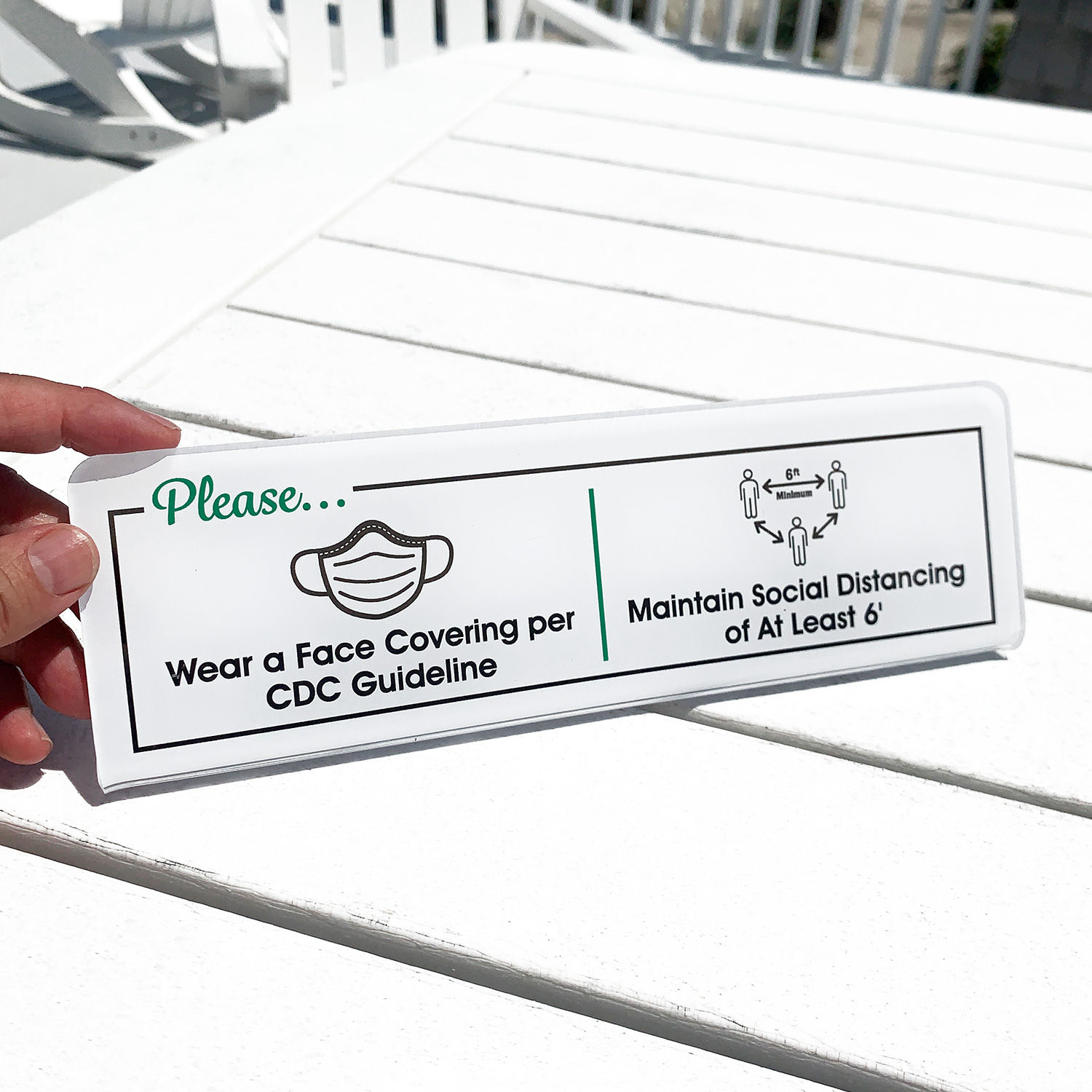 ShowCaseâ„¢ Desk Sign: Please Wear A Face Covering Per CDC Guideline, Maintain Social Distancing Of At Least 6 Feet (SE-7453)