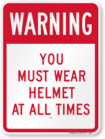 If wearing helmet at all times is mandatory, effectively communicate the same by posting this warning sign. Red and white contrasting colors make your message highly visible, even from afar.