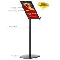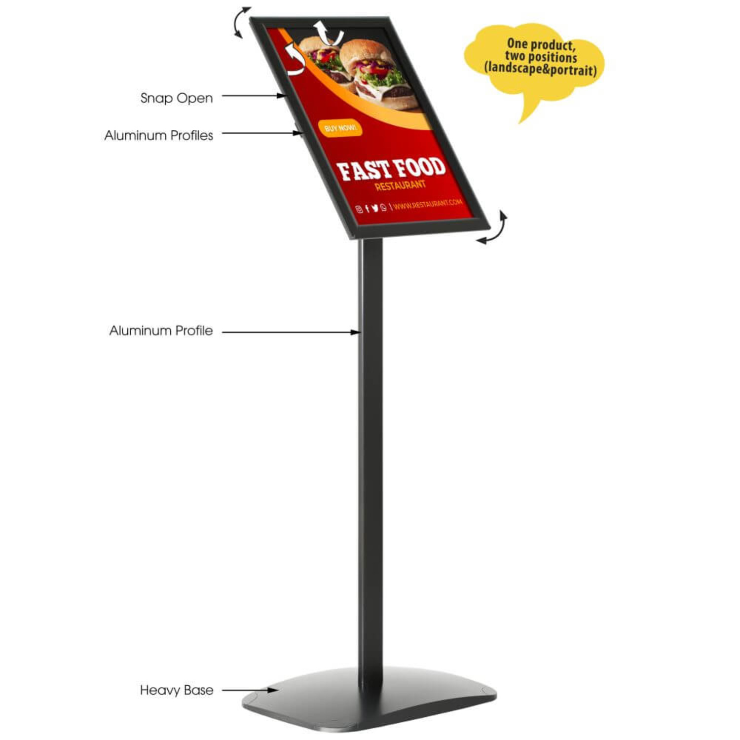 The 11" x 17" freestanding sign post provides a clean, elevated look for your directional or promotional signage. Its height ensures your message is at eye level.
