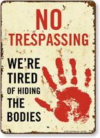 Use a Funny No Trespassing Sign to get your point across with a smile. Check out our signs below for marking your home, property, or business.