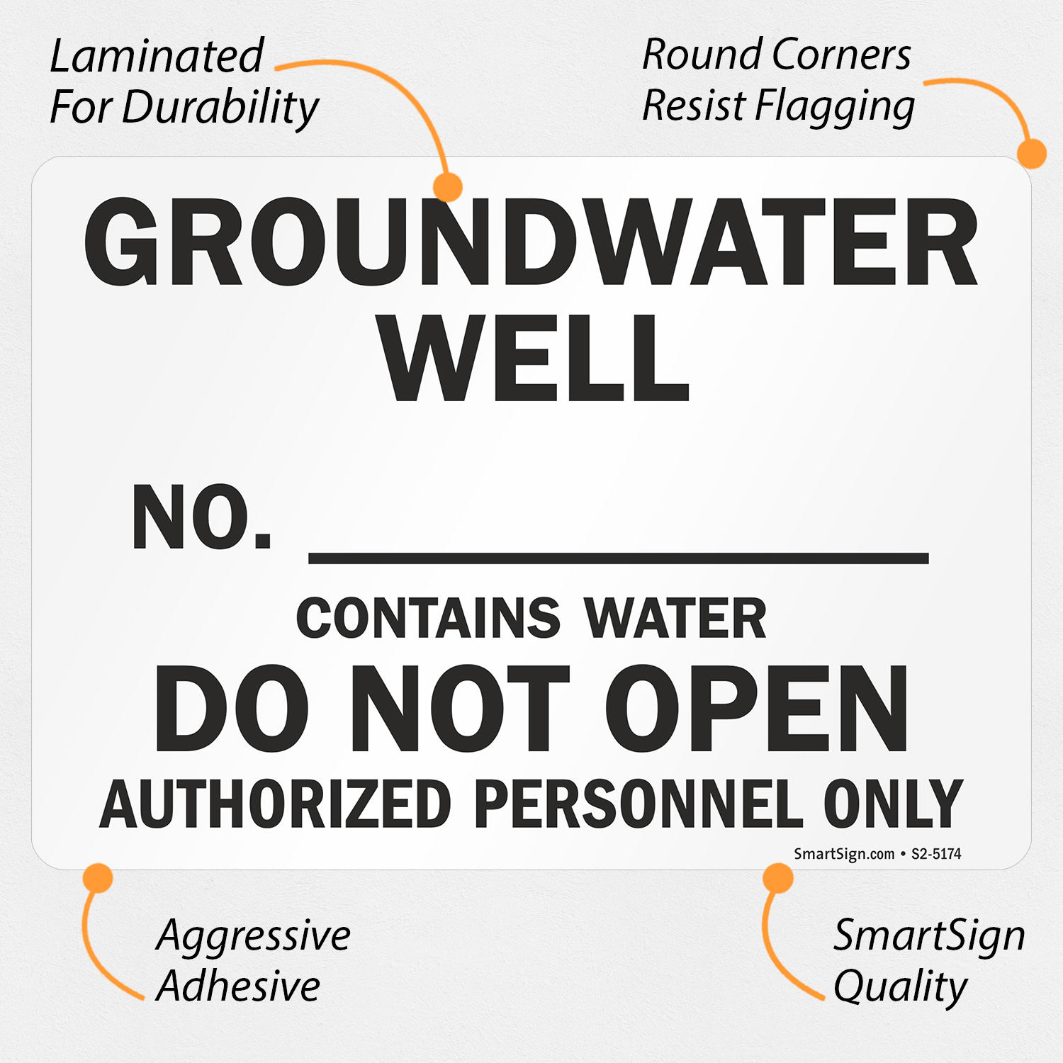 Groundwater Well Write-On Sign: Contains Water Do Not Open, Authorized Personnel Only (S2-5174)