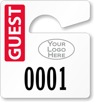 • • Order mini behind-the-mirror tags, jumbo permits, or cardstock fluorescent tags imprinted with your name. Fluorescent tags are ideal for short term or daily use. Plastic passes are durable enough for re-use by other guests and last for years. Oversized plastic guest passes are easy to hang, yet hard to lose!
