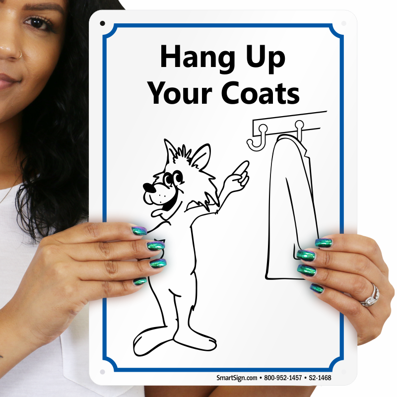 Elementary School Kids Sign: Hang Up Your Coats with Graphic (S2-1468)