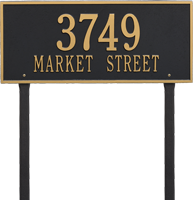 Stylishly elegant, the Hartford Estate Lawn Two Lines Address Plaque will add a level of sophistication to your home's exterior. The address plaque is made from rust-free cast aluminum providing excellent quality. The plaque has a classic rectangular shape.