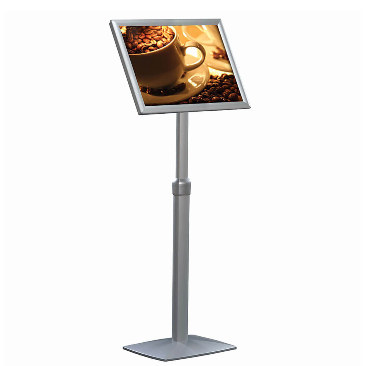 This 11" x 17" heavy-duty adjustable pedestal stand is a workhorse for event venues and trade shows. Adjust the height on the fly to meet changing needs.