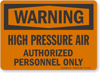 Near high-pressure air lines, you should post signs that warn of the risk of severe injury and state that the air valve must be shut off before any servicing. We also provide signs that mandate the use of eye protection, which is a critical piece of personal protective equipment (PPE) when working with pressurized systems.
