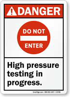 High-pressure systems, whether air, steam, or gas, pose a severe risk of injury from leaks, ruptures, or accidental release. Our high-pressure signs are essential for alerting workers to these invisible hazards, ensuring they take necessary precautions and helping you maintain a safe, OSHA-compliant work environment.