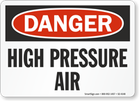 Near high-pressure air lines, you should post signs that warn of the risk of severe injury and state that the air valve must be shut off before any servicing. We also provide signs that mandate the use of eye protection, which is a critical piece of personal protective equipment (PPE) when working with pressurized systems.