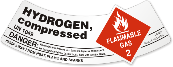 Cylinder Shoulder Label For Class 2 Flammable Gas: Hydrogen, Compressed - Danger Keep Away from Heat, Flame And Sparks Label - UN 1049 LB-1970