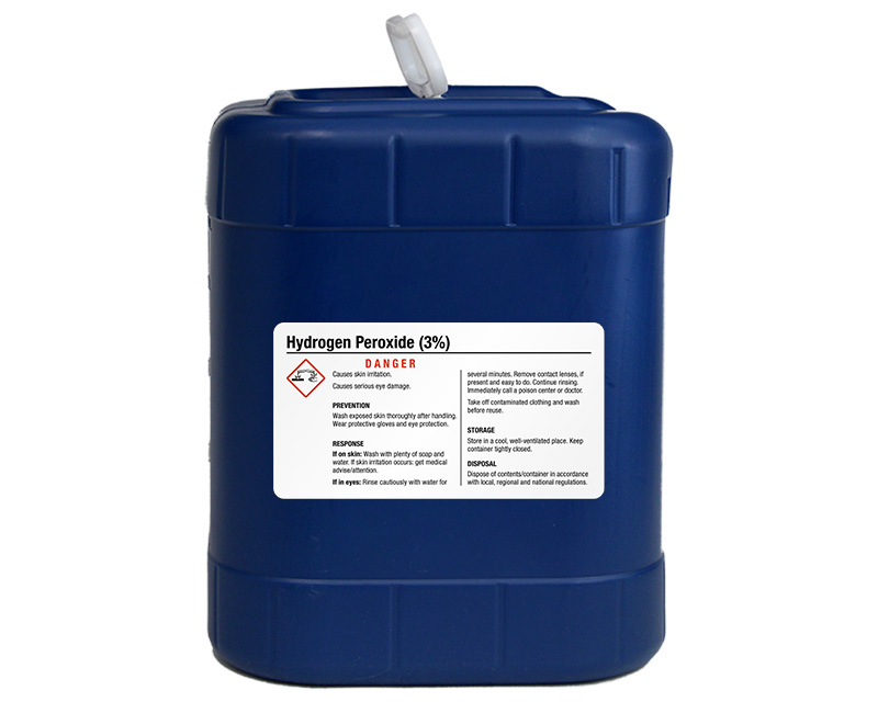 • • Find all necessary info on the label related to hydrogen peroxide.