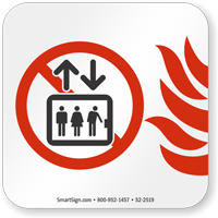 This fully compliant NFPA 170 Sign shall be applied near elevator call button. The updated symbol means - Do Not Use Elevator in Case of Fire.