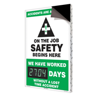 • • Digital Safety Scoreboards are an inexpensive way to remind about safety. Try our digital electronic display, magnetic numbers, or zip track numbers.