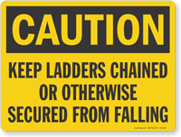 Accidental fall of heavy ladders can result in grave injuries. Put up this sign and remind workers to chain ladders.