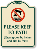 Keep Off Grass SignatureSign: Please Keep To Path. Grass Grows By Inches And Dies By Feet! K2-0043 Learn More...
