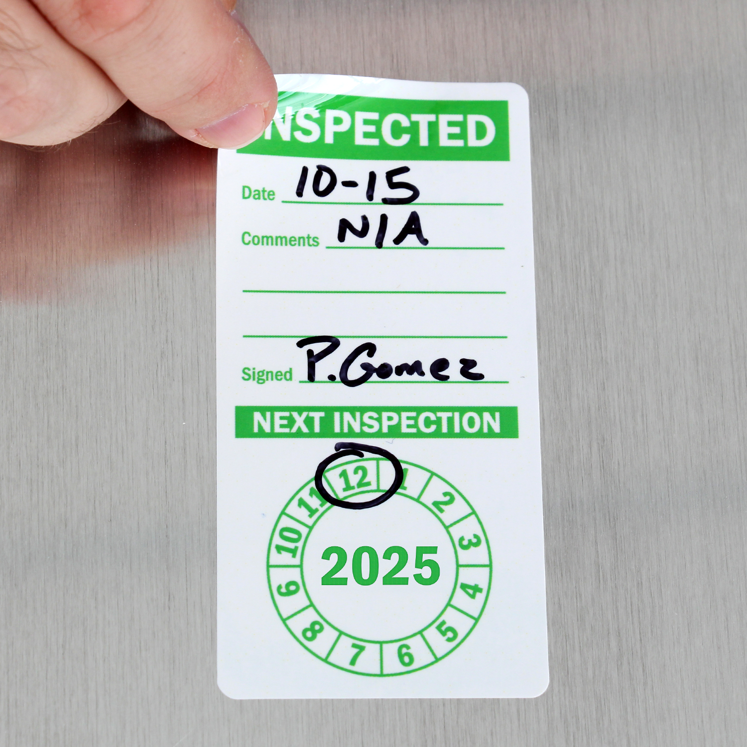 - Easily keep track of inspection schedules. Simply punch out the next month and stick on.