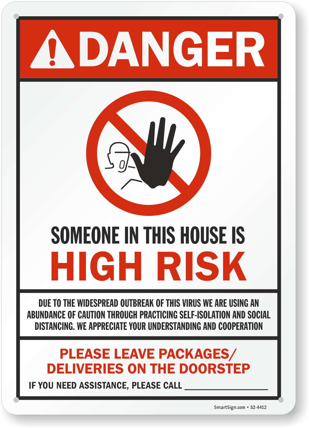 Inform outsiders about the presence of a high-risk COVID case and do your part in limiting the spread. Install this danger sign that grabs attention instantly.