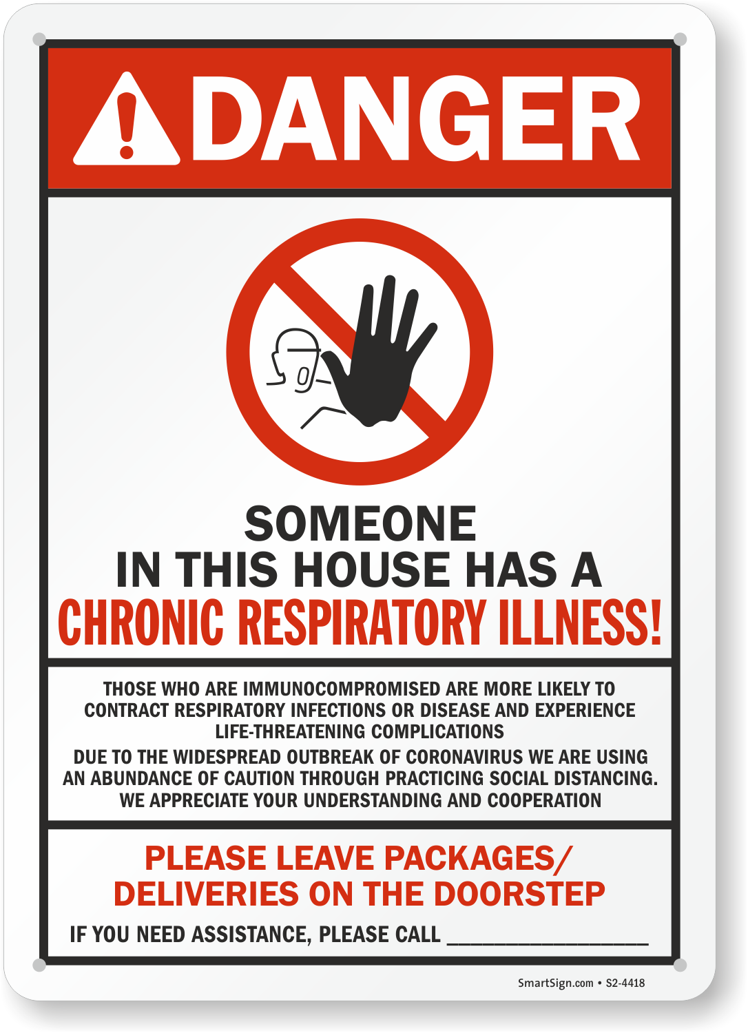 Prevent high-risk people in your family from being exposed to the virus through outsiders. Post our danger sign and have your packages delivered contactlessly.