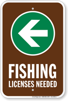 Campground Sign, Park Sign & Guide Sign: Fishing - License Needed (With Left Arrow) (K2-4451-L) Learn More...