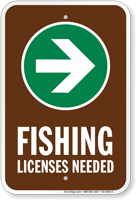 Campground Sign, Park Sign & Guide Sign: Fishing - License Needed (With Right Arrow) (K2-4451-R) Learn More...
