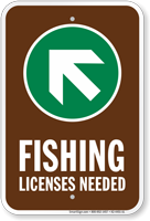 Campground Sign, Park Sign & Guide Sign: Fishing - License Needed (With Up Arrow Pointing Left) (K2-4451-UL) Learn More...