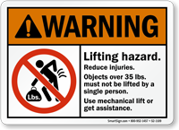 Prevent Lifting Hazard at your facility. Use this ANSI Warning Sign to inform your employees to get additional assistance or use a mechanical lift to lift heavy objects.