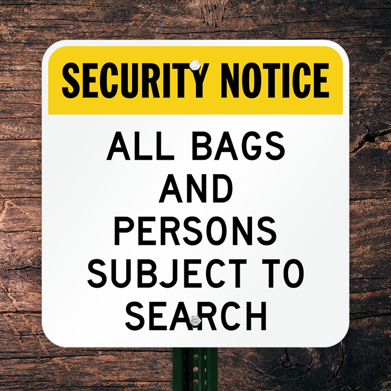 In today's world, security cannot be compromised. Alert people that they or their bags may be subject to search for safety and security reasons.