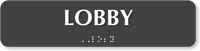 Permanent rooms in your building like the Lobby are required to be identified with a TactileTouchâ„¢ Braille Sign like this.