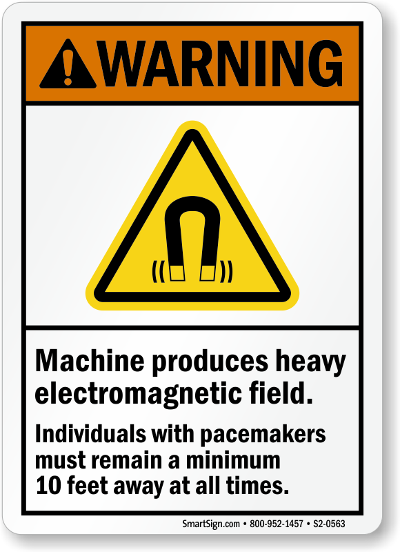 ANSI Warning Sign: Machine Produces Heavy Electromagnetic Field, Individuals With Pacemakers Must Remain a Minimum 10 Feet Away At All Times
