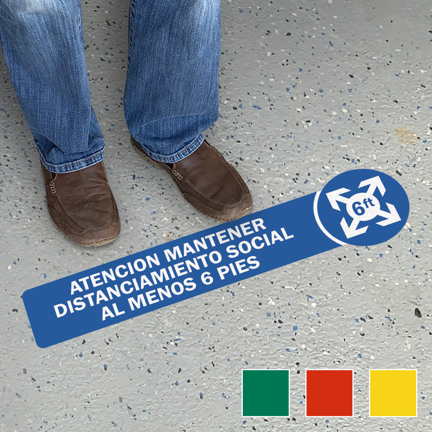 Spanish SlipSafeâ„¢ Floor Sign: Attention - Maintain Social Distancing Of At Least 6 Feet Apart