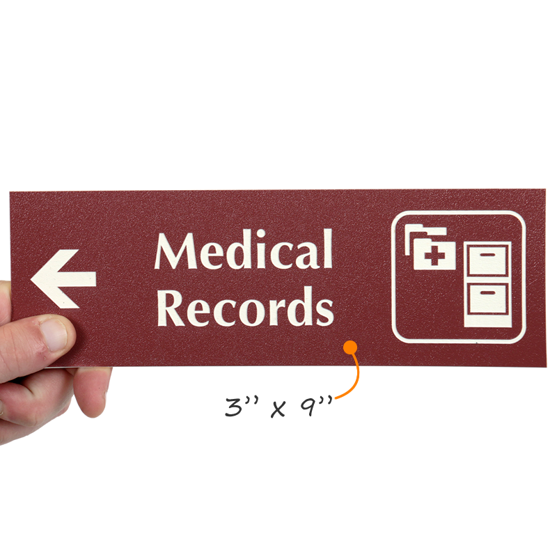 Select-a-Color Engraved Medical Healthcare Wayfinding Sign: Medical Records (Medical File Cabinet and Left Arrow Symbol) (SE-6453-L) Learn More...