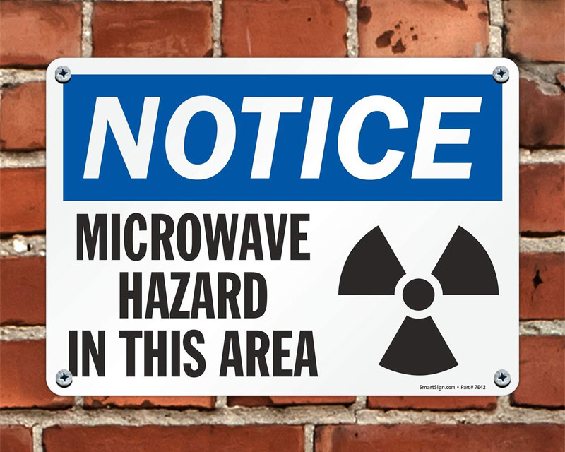Radiation emitted by microwaves can severely damage human cells and tissues. Alert employees and visitors to areas in your workplace that have a high amount of microwave frequencies.